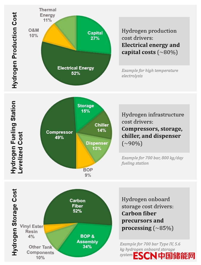氫氣的生產(chǎn)、分配和儲存技術(shù)的成本驅(qū)動(dòng)因素舉例。