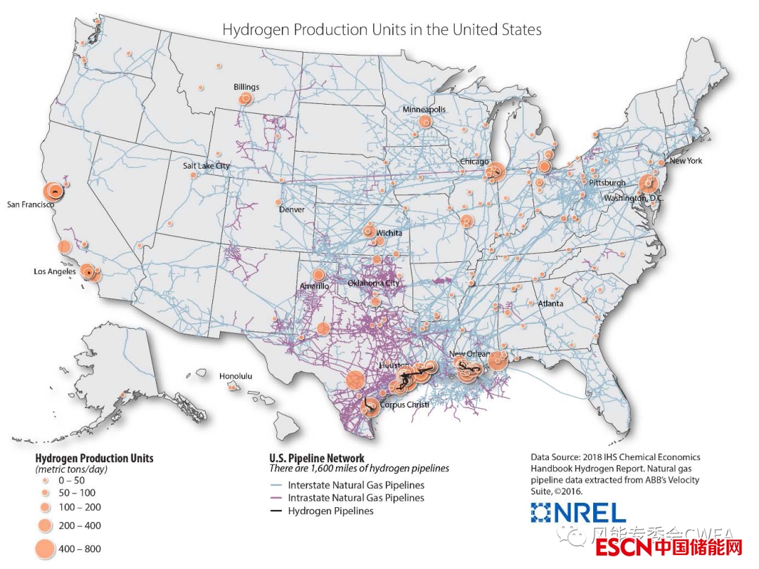 美國氫氣和天然氣的生產(chǎn)工廠和管道布局圖