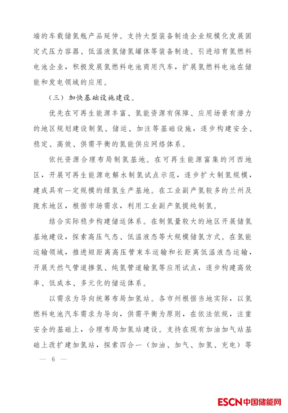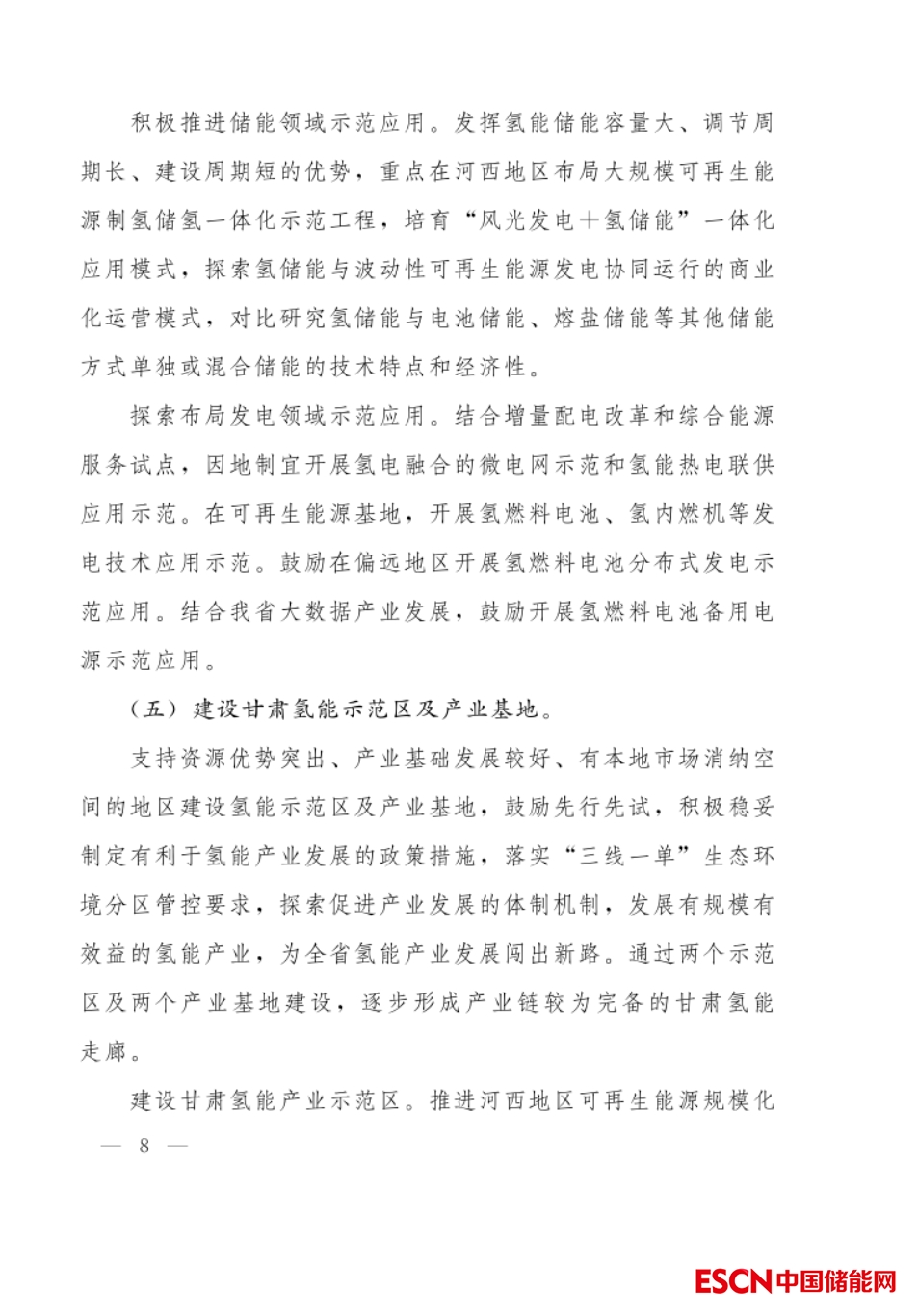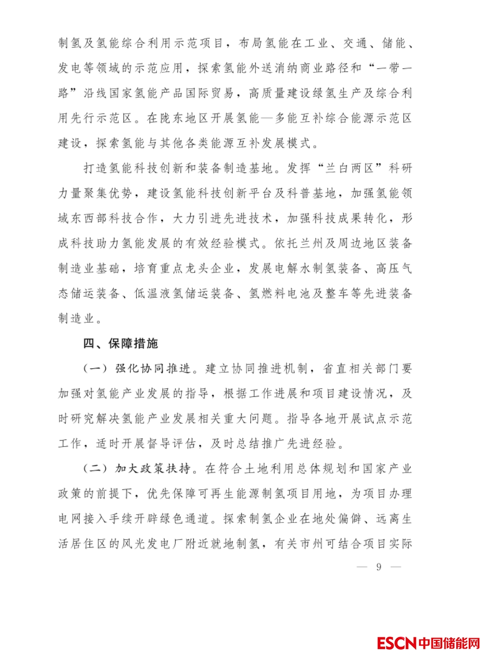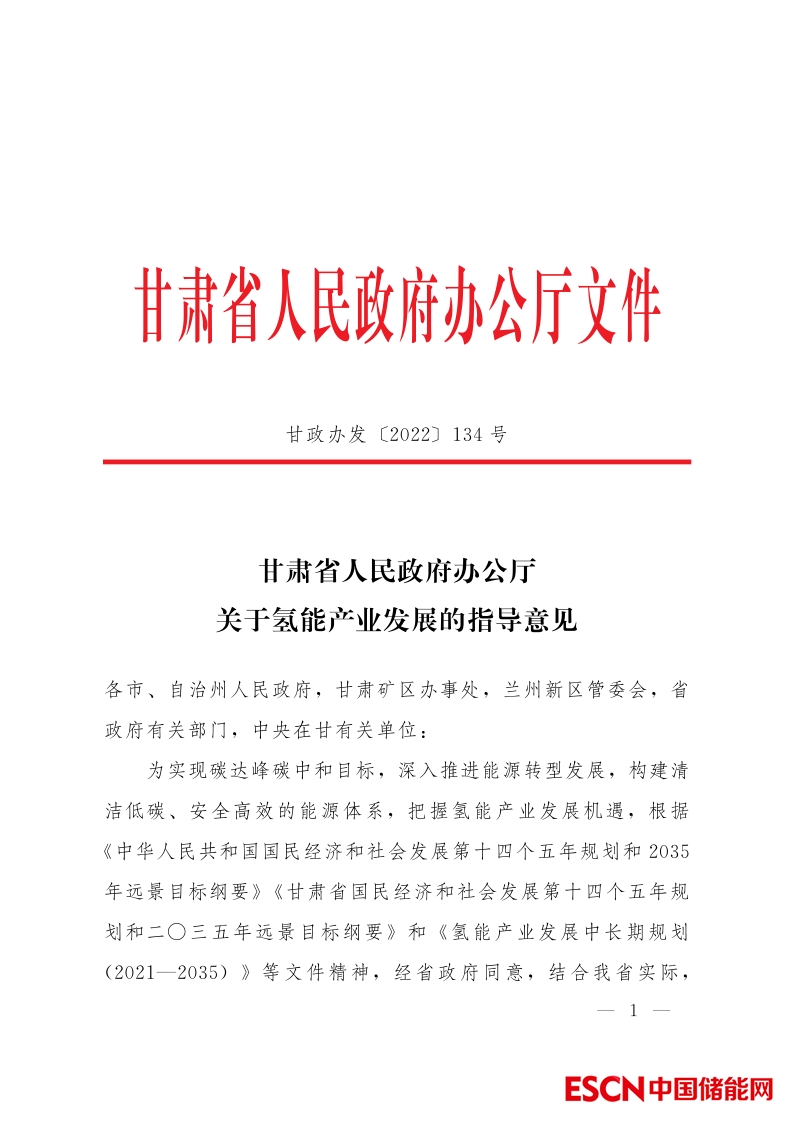 中國(guó)儲(chǔ)能網(wǎng)訊:1月3日,甘肅省人民政府辦公廳發(fā)布關(guān)于氫能產(chǎn)業(yè)發(fā)展的指導(dǎo)意見,意見指出,支持在高速公路服務(wù)區(qū)內(nèi)布局建設(shè) “分布式光伏+制氫、儲(chǔ)氫、加氫”一體化示范應(yīng)用。培育 “風(fēng)光發(fā)電+氫儲(chǔ)能”一體化應(yīng)用模式,探索氫儲(chǔ)能與波動(dòng)性可再生能源發(fā)電協(xié)同運(yùn)行的商業(yè)化運(yùn)營(yíng)模式,對(duì)比研究氫儲(chǔ)能與電池儲(chǔ)能、熔鹽儲(chǔ)能等其他儲(chǔ)能方式單獨(dú)或混合儲(chǔ)能的技術(shù)特點(diǎn)和經(jīng)濟(jì)性。