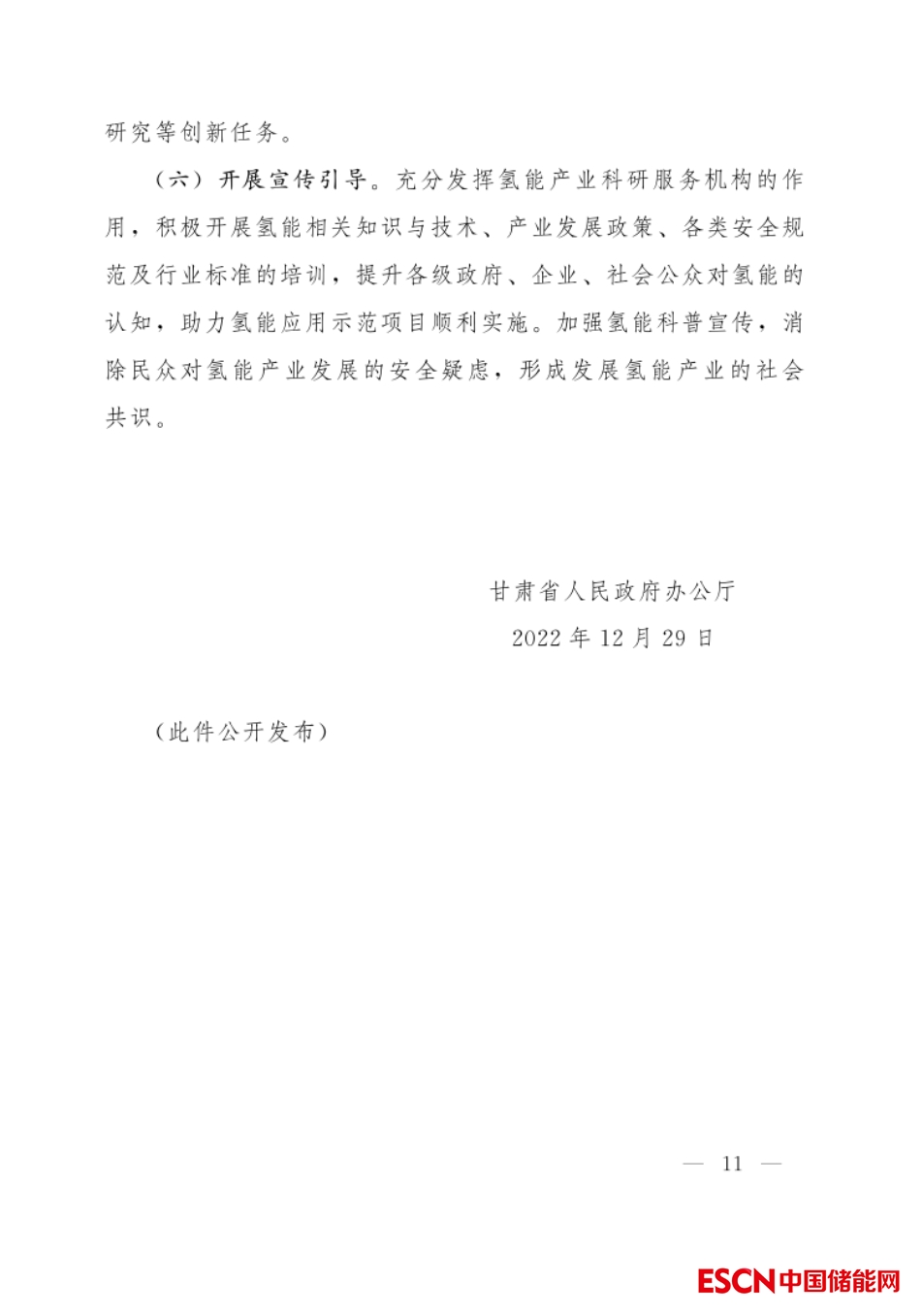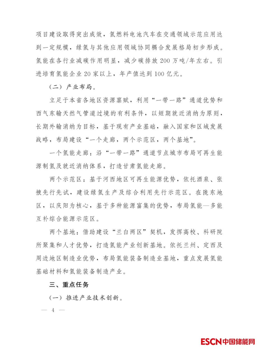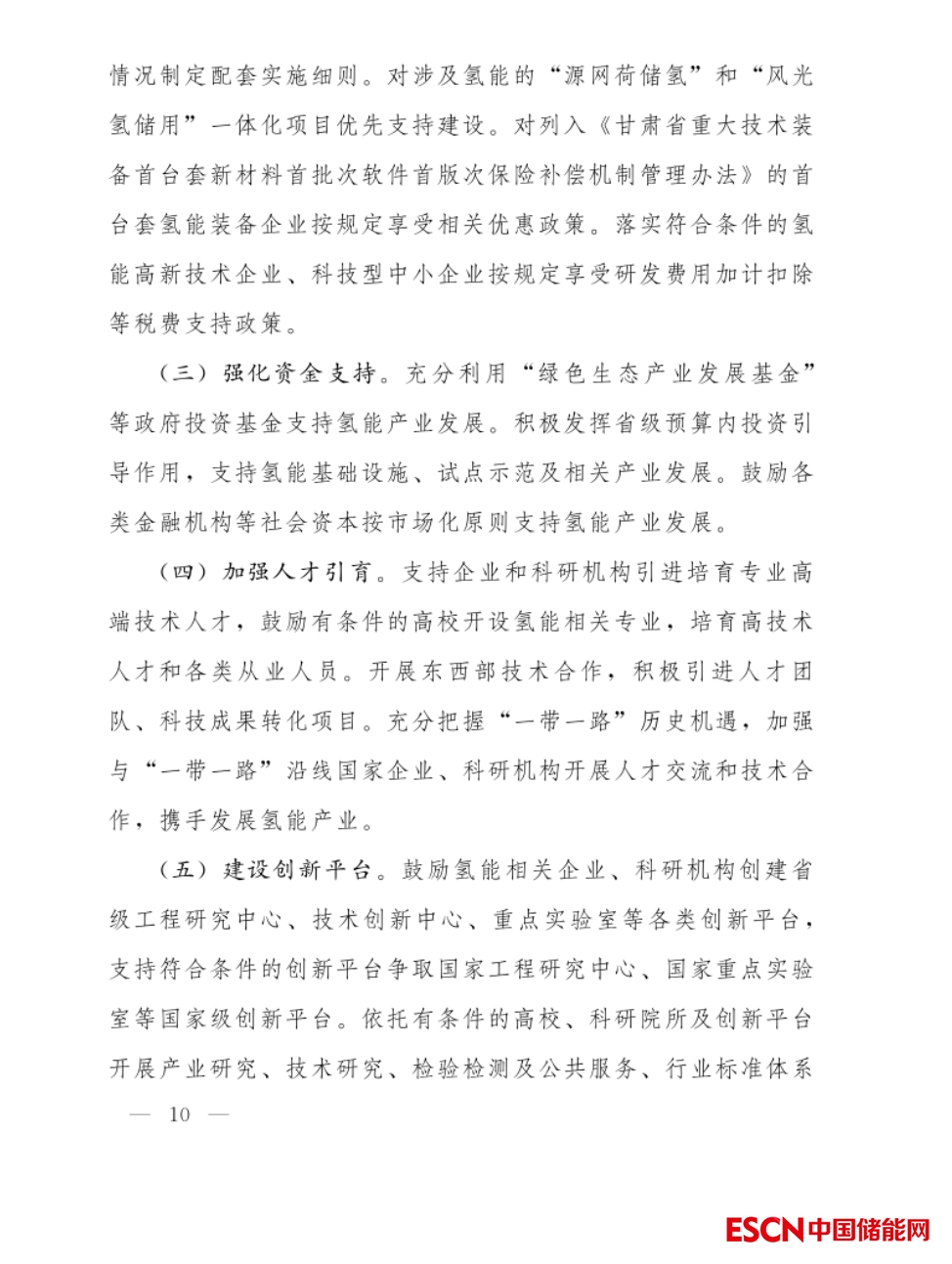 中國(guó)儲(chǔ)能網(wǎng)訊:1月3日,甘肅省人民政府辦公廳發(fā)布關(guān)于氫能產(chǎn)業(yè)發(fā)展的指導(dǎo)意見,意見指出,支持在高速公路服務(wù)區(qū)內(nèi)布局建設(shè) “分布式光伏+制氫、儲(chǔ)氫、加氫”一體化示范應(yīng)用。培育 “風(fēng)光發(fā)電+氫儲(chǔ)能”一體化應(yīng)用模式,探索氫儲(chǔ)能與波動(dòng)性可再生能源發(fā)電協(xié)同運(yùn)行的商業(yè)化運(yùn)營(yíng)模式,對(duì)比研究氫儲(chǔ)能與電池儲(chǔ)能、熔鹽儲(chǔ)能等其他儲(chǔ)能方式單獨(dú)或混合儲(chǔ)能的技術(shù)特點(diǎn)和經(jīng)濟(jì)性。