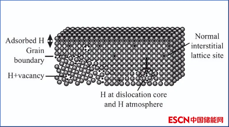 另一類是金屬材料的高壓儲運(yùn)設(shè)備發(fā)生氫脆,從而導(dǎo)致氫氣泄漏爆炸。氫脆是氫能在儲運(yùn)階段最大的風(fēng)險(xiǎn)。簡單說,氫脆就是氫元素由于很小,可以很容易溶解進(jìn)入到許多金屬材料中,當(dāng)大量氫元素進(jìn)入到了金屬內(nèi)部,氫原子就會變成氫分子,然后在內(nèi)部產(chǎn)生巨大壓力,從而導(dǎo)致斷裂發(fā)生。而且設(shè)備的等級越高、壓力越大,氫脆發(fā)生的概率就越大。
