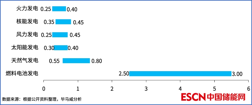 我國不同類型發(fā)電成本區(qū)間估算(元/kWh)