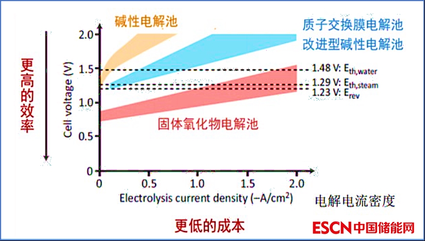 其中,堿性電解水和質(zhì)子交換膜電解水技術(shù)已經(jīng)處于TRL8—9,也就是達(dá)到了成熟可規(guī)?;碾A段。固體氧化物電解水TRL達(dá)到5—6,也就是技術(shù)示范到系統(tǒng)開發(fā)階段(比ALK、PEM效率更高、成本更低),但尚未進(jìn)入規(guī)?;A段。而陰離子交換膜電解水仍處于技術(shù)開發(fā)階段,距離規(guī)模化還有一段較長的距離。
