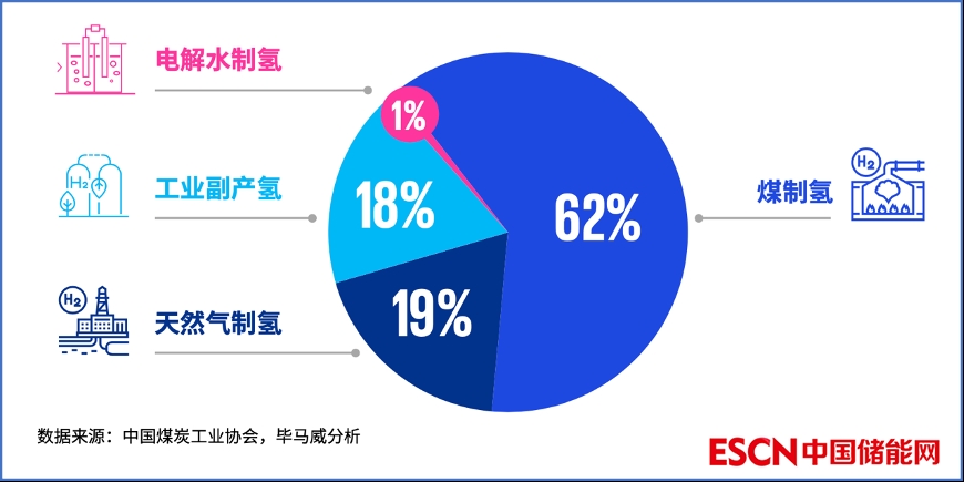 目前我國比較成熟的常用制氫技術(shù)包括煤制氫(灰氫)、天然氣制氫(灰氫)、工業(yè)副產(chǎn)制氫(藍(lán)氫)和電解水制氫(綠氫)。據(jù)統(tǒng)計(jì),2020年我國共制氫2500萬噸,其中煤制氫占比高達(dá)62%,天然氣制氫為19%,工業(yè)副產(chǎn)制氫為18%,電解水制氫為1%。