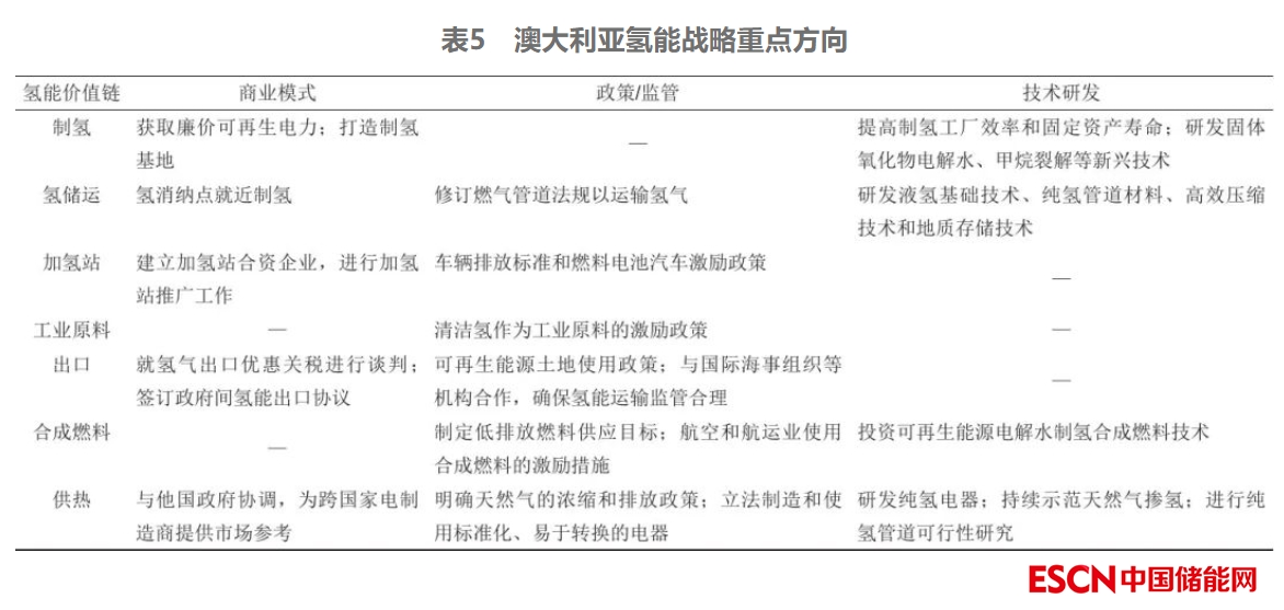 在全球氫能發(fā)展熱潮之下,澳大利亞將自身定位為清潔氫能供應(yīng)者角色,積極擴(kuò)展氫能海外供應(yīng)合作,并與相關(guān)國(guó)家和企業(yè)開展技術(shù)合作,力爭(zhēng)搶占?xì)淠芄?yīng)鏈上游,鞏固全球能源貿(mào)易大國(guó)地位。2019年澳大利亞政府發(fā)布了《國(guó)家氫能戰(zhàn)略》,確定了15大發(fā)展目標(biāo)、57項(xiàng)聯(lián)合行動(dòng),力爭(zhēng)到2030年成為全球氫能產(chǎn)業(yè)的主要參與者,2050年綠氫產(chǎn)能達(dá)到3000萬噸/年。澳大利亞既積極發(fā)展可再生能源電解水制氫,也推進(jìn)化石能源耦合CCS(碳捕捉與封存)制氫產(chǎn)業(yè)發(fā)展。澳大利亞各州也積極跟進(jìn),昆士蘭、南澳大利亞、維多利亞等州出臺(tái)了針對(duì)轄區(qū)內(nèi)的氫能發(fā)展專項(xiàng)規(guī)劃。