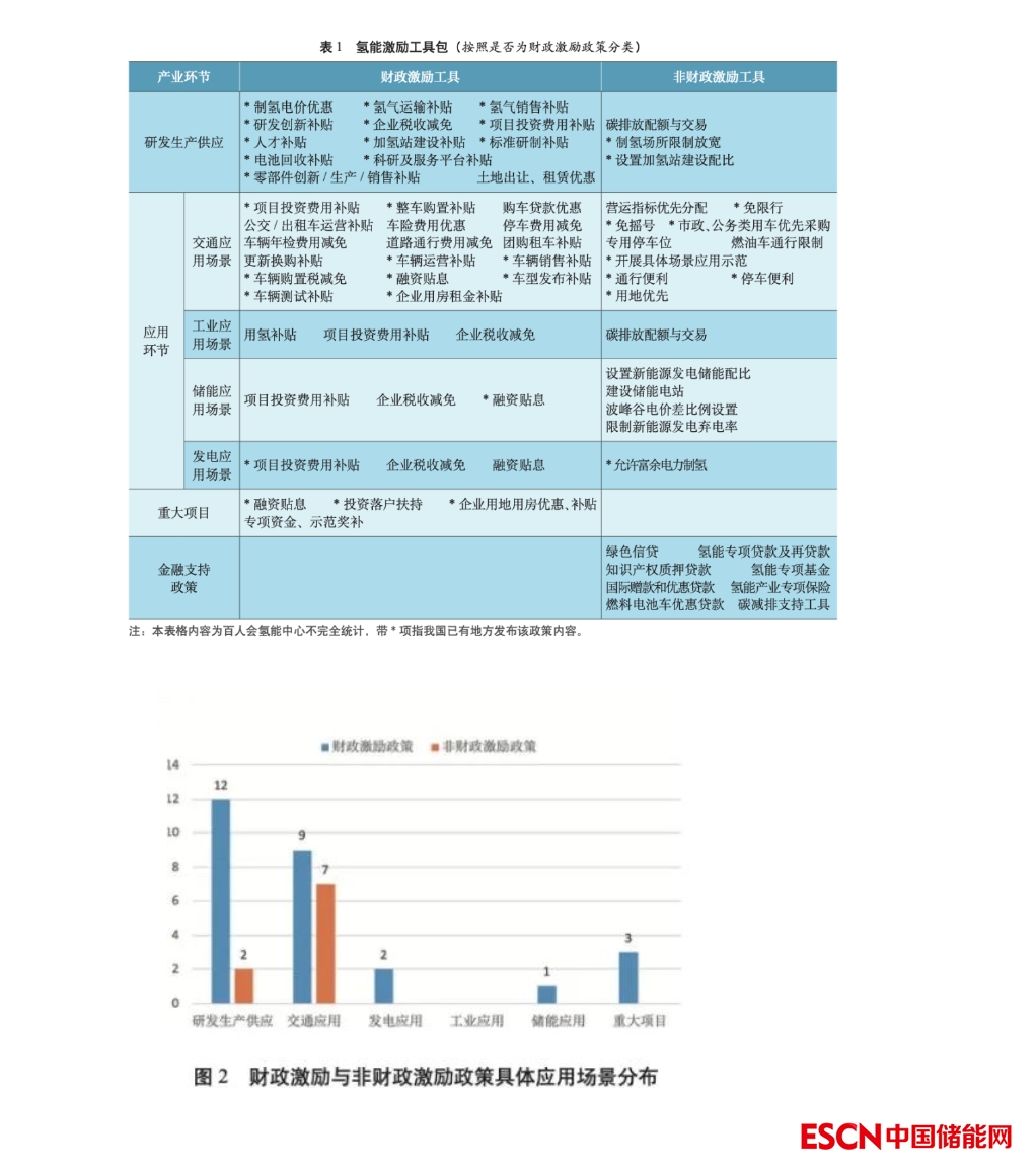 由于產(chǎn)業(yè)基礎(chǔ)、發(fā)展定位、經(jīng)濟(jì)狀況的差異, 我國各地發(fā)布?xì)淠艿恼邇?nèi)容以及政策力度不盡相同。按照是否財(cái)政激勵來分類,氫能產(chǎn)業(yè)激勵 工具包由財(cái)政激勵工具和非財(cái)政激勵工具組成。所有的激勵工具區(qū)分生產(chǎn)供應(yīng)和應(yīng)用兩個環(huán)節(jié), 其中,應(yīng)用環(huán)節(jié)包括交通、工業(yè)、發(fā)電、儲能等應(yīng)用場景。目前開發(fā)的氫能激勵工具可以概括為表1 所示內(nèi)容。從現(xiàn)有的激勵工具來看,針對研發(fā)生產(chǎn)供應(yīng)環(huán)節(jié)以及交通應(yīng)用場景的財(cái)政激勵工具較為全面豐富,亟需開發(fā)更多的非財(cái)政激勵工具,面向發(fā)電、工業(yè)、儲能等多元化應(yīng)用場景。根據(jù)百人會氫能中心的不完全統(tǒng)計(jì)及分析,我國氫能激勵政策主要存在應(yīng)用場景局限、激勵模式單一、邊際效益遞減、實(shí)施細(xì)則缺乏等問題。