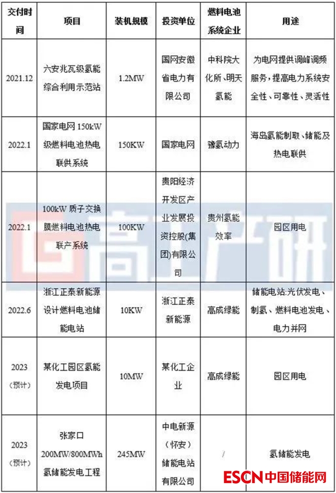 其他燃料電池企業(yè)如高成綠能、愛德曼、氫途科技、明天氫能、鯤華科技等均在推進氫儲能發(fā)電業(yè)務(wù)的展開。