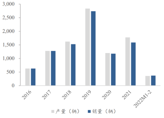 圖3 我國(guó)氫能源車(chē)產(chǎn)量銷(xiāo)量情況