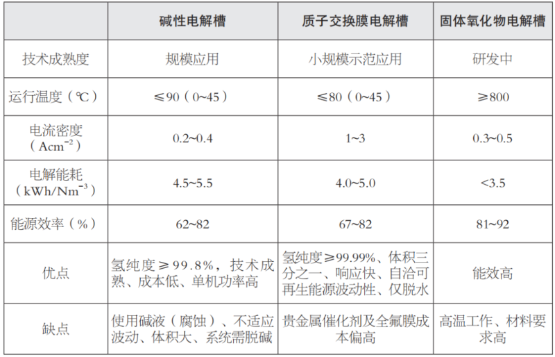 表2 我國(guó)主要電解水制氫技術(shù)優(yōu)缺點(diǎn)對(duì)比