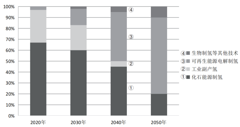 圖1 我國(guó)氫氣供給結(jié)構(gòu)預(yù)測(cè)