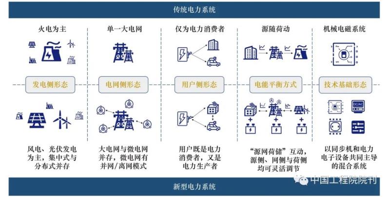 圖2 新型電力系統(tǒng)與傳統(tǒng)電力系統(tǒng)的對比