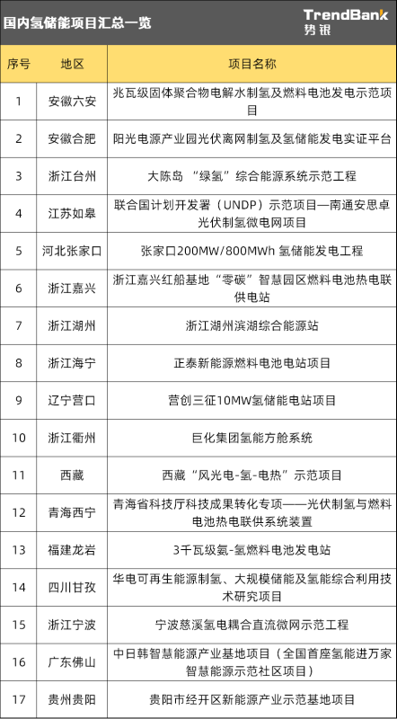 據(jù)不完全統(tǒng)計,目前國內(nèi)已有17個氫儲能項目(詳情見下表)。