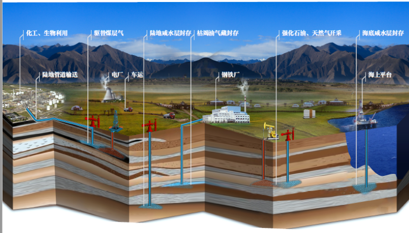 可分為地質(zhì)利用、化工利用、生物質(zhì)利用、地質(zhì)封存等多種途徑。目前,二氧化碳封存的主要方法主要是地質(zhì)封存,即將超臨界狀態(tài)(氣態(tài)及液態(tài)的混合體)的二氧化碳注入地質(zhì)結(jié)構(gòu)中,比如油田、氣田、咸水層、無(wú)法開(kāi)采的煤礦等。