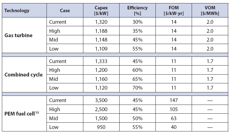 對下游發(fā)電成本的建模假設總結(jié)在表5.5和5.6中。