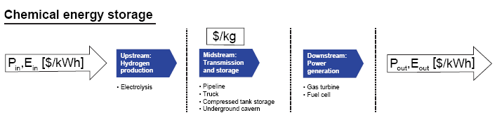 使用這種化學儲能途徑儲存能量的總成本,包括生產(chǎn)氫氣所需的電力成本和使用氫氣將作為燃料輸入發(fā)電的成本。