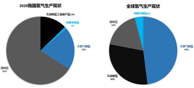 ▲圖:我國及全球氫產(chǎn)能結構現(xiàn)狀