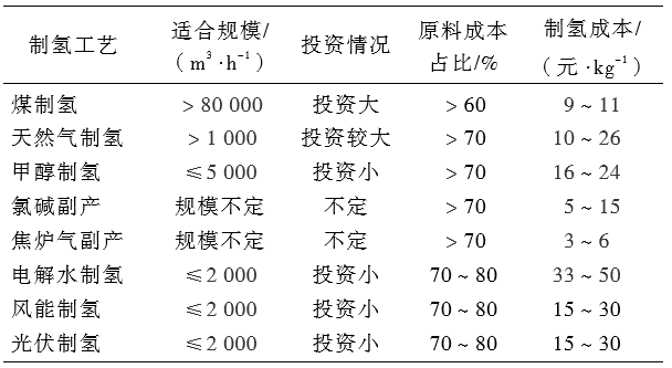 表2 不同制氫工藝經(jīng)濟性匯總