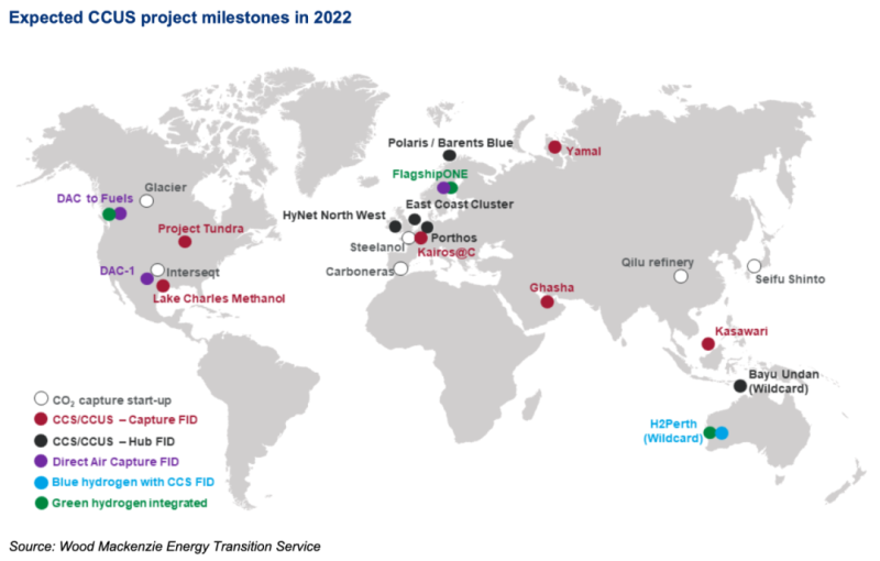2022年預(yù)計將實現(xiàn)FID目標(biāo)的CCUS項目概覽