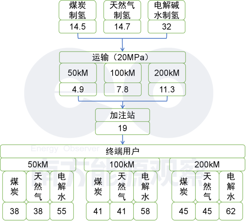 圖2 氫能全產(chǎn)業(yè)鏈成本(元/kg)