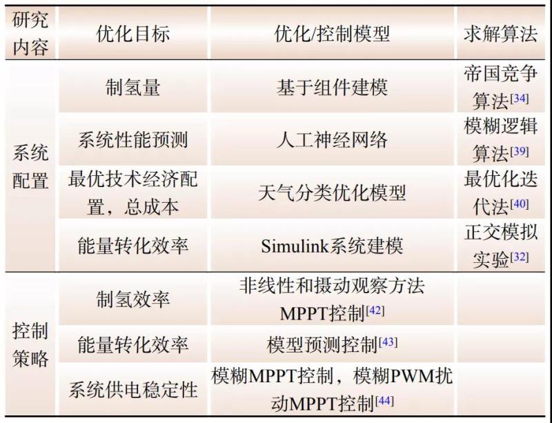 Table 1 Research summary of system capacity configuration and control optimization