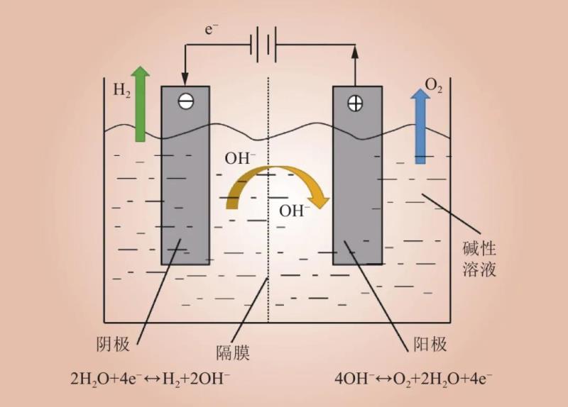 圖1 堿性電解水制氫原理
