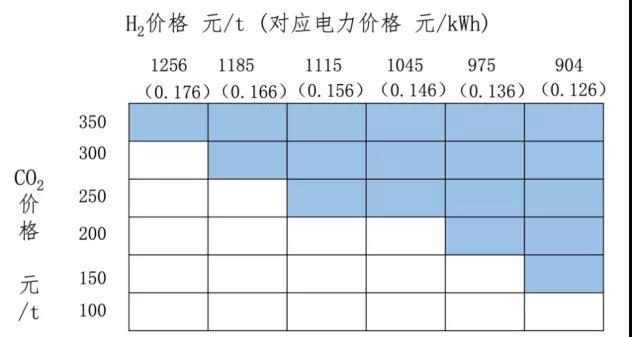 圖表9 氫冶金的競爭性成本優(yōu)勢分析(僅考慮H2和CO2價(jià)格)
