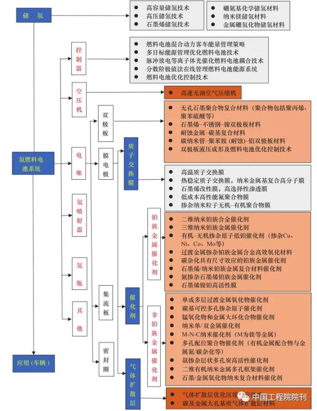 中國工程院歐陽曉平院士科研團隊在中國工程院院刊《中國工程科學》2021年第4期發(fā)表《氫燃料電池技術(shù)發(fā)展現(xiàn)狀及未來展望》,分析了國內(nèi)外氫燃料電池技術(shù)關(guān)鍵材料、核心組件的研發(fā)與應(yīng)用現(xiàn)狀,凝練了我國發(fā)展氫燃料電池技術(shù)面臨的問題,梳理了未來相關(guān)技術(shù)發(fā)展方向并提出保障措施建議,以期為行業(yè)技術(shù)發(fā)展提供基礎(chǔ)性參考。文章圍繞氫燃料電池技術(shù)體系,分析了質(zhì)子交換膜、電催化劑、氣體擴散層等膜電極組件,雙極板,系統(tǒng)部件,控制策略等方面的研究進展與發(fā)展態(tài)勢;結(jié)合我國氫燃料電池技術(shù)領(lǐng)域國產(chǎn)化率、系統(tǒng)壽命、功率密度、制造成本等方面的發(fā)展現(xiàn)狀分析,論證提出了面向2035年我國氫燃料電池技術(shù)系統(tǒng)發(fā)展方向。文章指出,為加速氫能及氫燃料電池技術(shù)應(yīng)用,應(yīng)加強制氫技術(shù)攻關(guān),降低氫氣燃料使用成本;加快關(guān)鍵材料和核心組件的技術(shù)攻關(guān)和轉(zhuǎn)化應(yīng)用;制定產(chǎn)業(yè)規(guī)劃并增加投入,構(gòu)建完備的政策支撐體系。