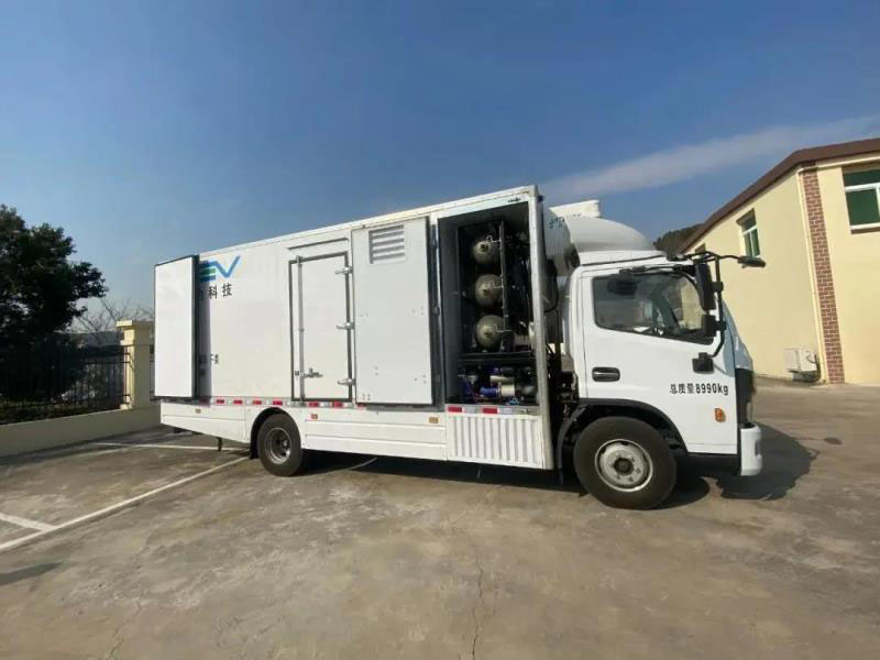 這輛氫能燃料電池冷鏈車總質(zhì)量為8990千克,與常規(guī)冷鏈車不同,該車動力由浙江錫力科技自主研發(fā)生產(chǎn)的50千瓦氫能燃料電池系統(tǒng)提供,并裝有3個5公斤氫氣罐,可裝載氫氣15公斤,為燃料電池系統(tǒng)供能。