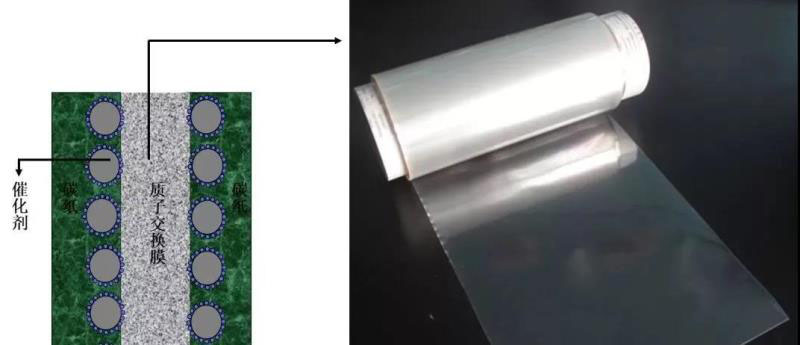 質(zhì)子交換膜是質(zhì)子交換膜燃料電池(PEMFC)的核心元件,以全氟磺酸膜為主,目前國產(chǎn)化進程提速。質(zhì)子交換膜目前主流趨勢是全氟磺酸增強型復(fù)合膜,質(zhì)子交換膜逐漸趨于薄型化,由幾十微米降低到十幾微米,降低質(zhì)子傳遞的歐姆極化,以達到更高的性能。國外企業(yè)有美國Gore公司,科慕(以前的杜邦)、3M、日本的旭化成等,國內(nèi)能夠批量化供應(yīng)只有山東東岳一家,山東東岳的膜已經(jīng)進入了奔馳的供應(yīng)鏈體系。