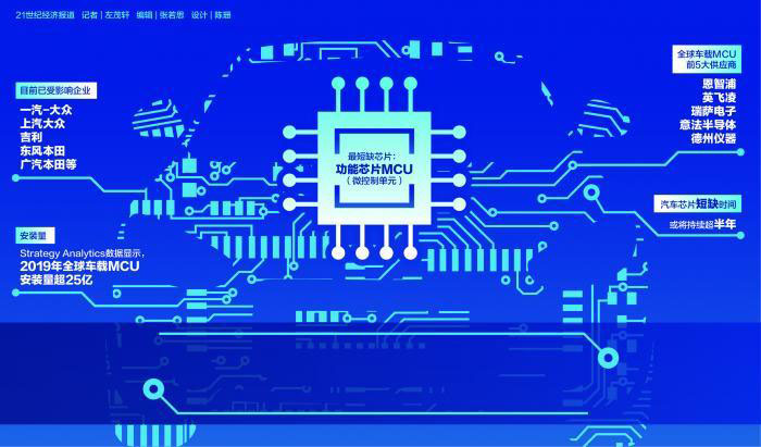有汽車行業(yè)人士告訴記者,目前短缺的汽車芯片最主要的是功能芯片MCU(微控制單元),MCU在傳統(tǒng)燃油汽車電子核心部件中被大量使用。Strategy Analytics公布的數(shù)據(jù)顯示,2019年,全球車載MCU安裝量超25億。