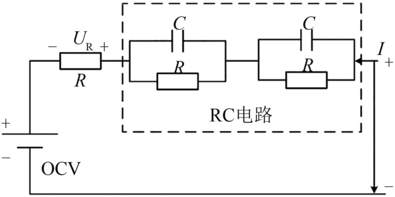 相對(duì)于電化學(xué)模型,等效電路模型結(jié)構(gòu)簡單且參數(shù)較少,方便用于系統(tǒng)的實(shí)時(shí)控制。常見的等效電路模型包括Rint模型、一階電阻電容(RC)模型和二階RC模型等。研究表明,一階RC及二階RC模型應(yīng)用較廣泛,而更高階的模型的適用性有所降低??紤]到電池內(nèi)部離子擴(kuò)散為非線性過程,分?jǐn)?shù)階等效電路模型也被用于描述鋰電池的特性。鄒淵等建立了分?jǐn)?shù)階阻抗模型,并使用粒子群優(yōu)化算法識(shí)別了模型參數(shù);魯偉等以18650型鋰電池為對(duì)象,建立了分?jǐn)?shù)階阻抗模型,并使用分?jǐn)?shù)階卡爾曼濾波器實(shí)現(xiàn)了鋰電池荷電狀態(tài)的估算。