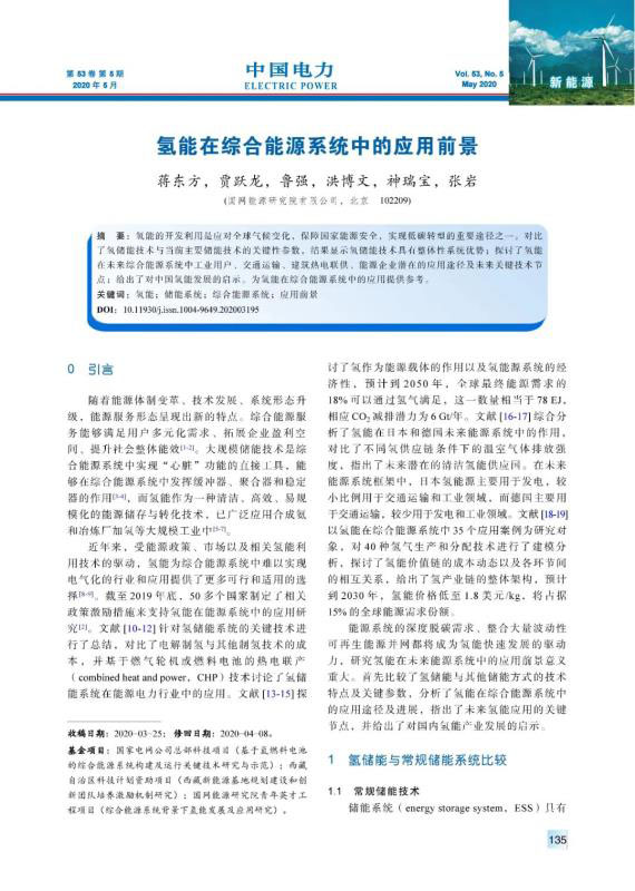 氫能的開發(fā)利用是應(yīng)對(duì)全球氣候變化,保障國(guó)家能源安全,實(shí)現(xiàn)低碳轉(zhuǎn)型的重要途徑之一。對(duì)比了氫儲(chǔ)能技術(shù)與當(dāng)前主要儲(chǔ)能技術(shù)的關(guān)鍵性參數(shù),結(jié)果顯示氫儲(chǔ)能技術(shù)具有整體性系統(tǒng)優(yōu)勢(shì);探討了氫能在未來綜合能源系統(tǒng)中工業(yè)用戶、交通運(yùn)輸、建筑熱電聯(lián)供、能源企業(yè)潛在的應(yīng)用途徑及未來關(guān)鍵技術(shù)節(jié)點(diǎn);給出了對(duì)中國(guó)氫能發(fā)展的啟示。為氫能在綜合能源系統(tǒng)中的應(yīng)用提供參考。