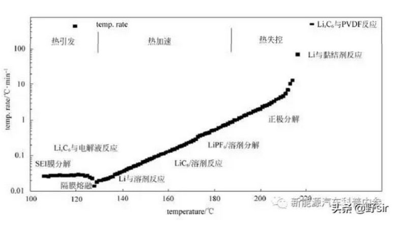 上圖體現(xiàn)的是性能正常的電芯,熱量積累引發(fā)熱失控的過程。撞擊,穿刺等機(jī)械損傷造成的熱失控,不在這張圖的描述范圍。