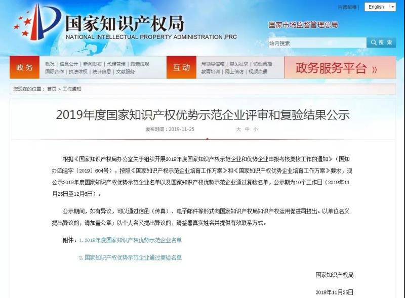 11月25日,2019年度國家知識(shí)產(chǎn)權(quán)示范企業(yè)和優(yōu)勢(shì)企業(yè)公示名單出爐,鉅威動(dòng)力入選成為“國家知識(shí)產(chǎn)權(quán)優(yōu)勢(shì)企業(yè)”。