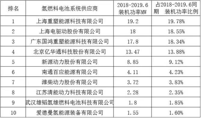 自2018至2019年上半年以來,上海重塑、上海電驅(qū)動(dòng)、國鴻重塑、億華通等四家企業(yè)裝機(jī)功率達(dá)到68.47MW,CR4已經(jīng)達(dá)到70.55%,頭部效應(yīng)初顯。