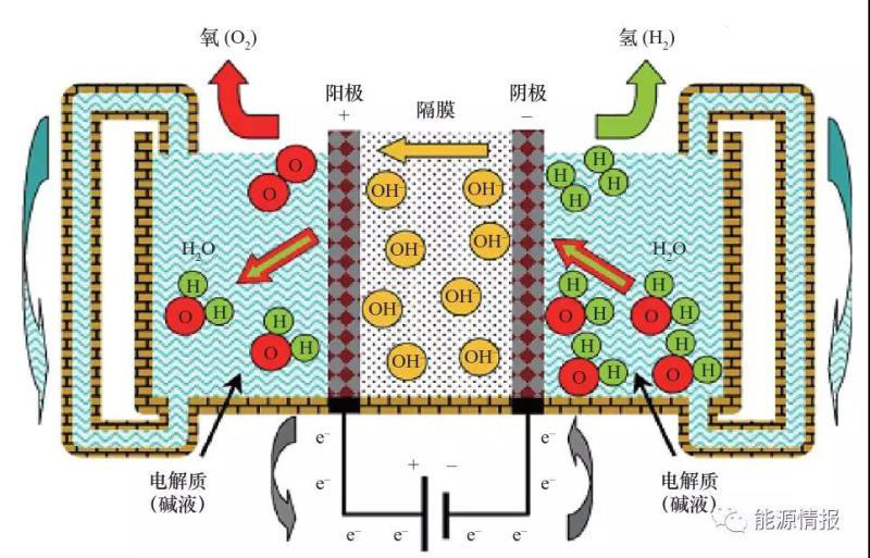 電解水制氫是在直流電的作用下,通過電化學(xué)過程將水分子解離為氫氣與氧氣,分別在陰、陽兩極析出。根據(jù)隔膜不同,可分為堿水電解、質(zhì)子交換膜水電解、固體氧化物水電解。