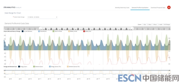 Energy Toolbase分析選擇的儲(chǔ)能系統(tǒng)日期范圍的需求概況和成本數(shù)據(jù)