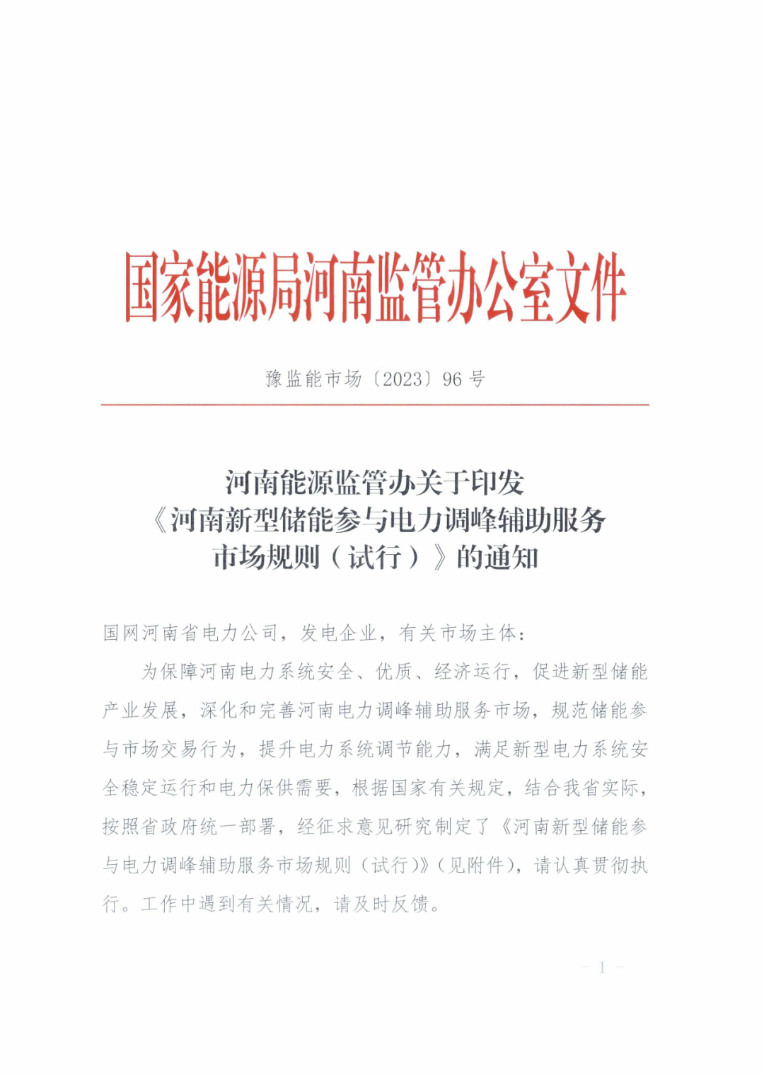中國儲能網(wǎng)訊:7月18日,國家能源局河南監(jiān)管辦正式發(fā)布《河南新型儲能參與電力調(diào)峰輔助服務(wù)市場規(guī)則(試行)》(下稱:規(guī)則)。重點(diǎn)內(nèi)容如下: