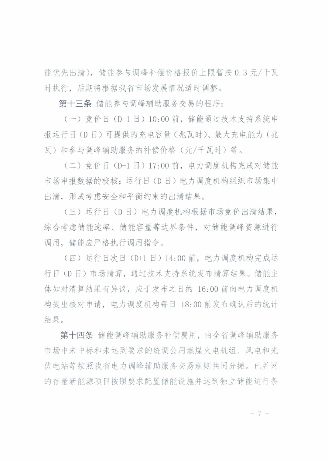 按照“日前報(bào)價(jià)、實(shí)時出清”交易機(jī)制,儲能依照我省火電機(jī)組第一檔調(diào)峰輔助服務(wù)交易結(jié)算價(jià)格優(yōu)先出清(報(bào)價(jià)相同時儲能優(yōu)先出清),儲能參與調(diào)峰補(bǔ)償價(jià)格報(bào)價(jià)上限暫按0.3元/kWh執(zhí)行,后期將根據(jù)我省市場發(fā)展情況適時調(diào)整。