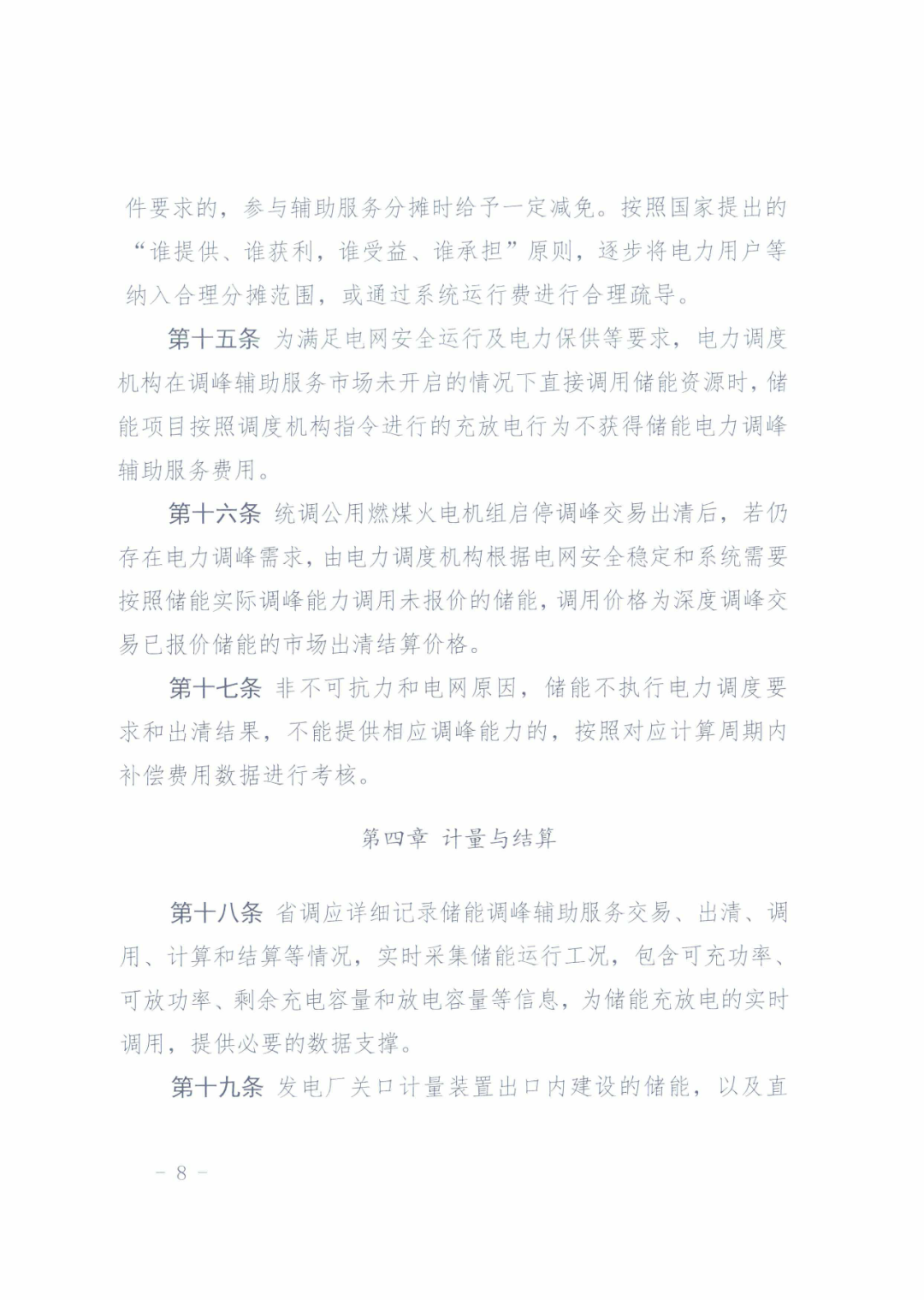 在計(jì)量方面,發(fā)電廠關(guān)口計(jì)量裝置出口內(nèi)建設(shè)的儲能,以及直接接入電網(wǎng)的儲能充放電量,參與電力調(diào)峰輔助服務(wù)市場需獨(dú)立計(jì)量計(jì)算。