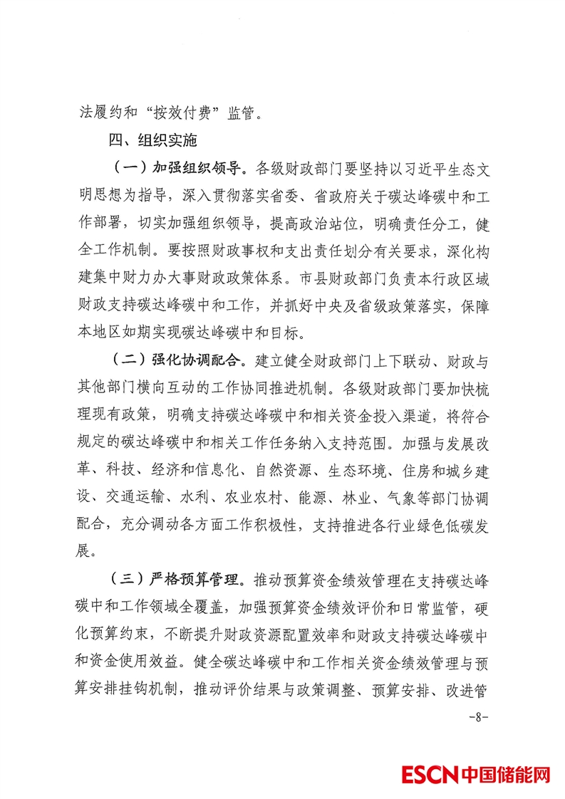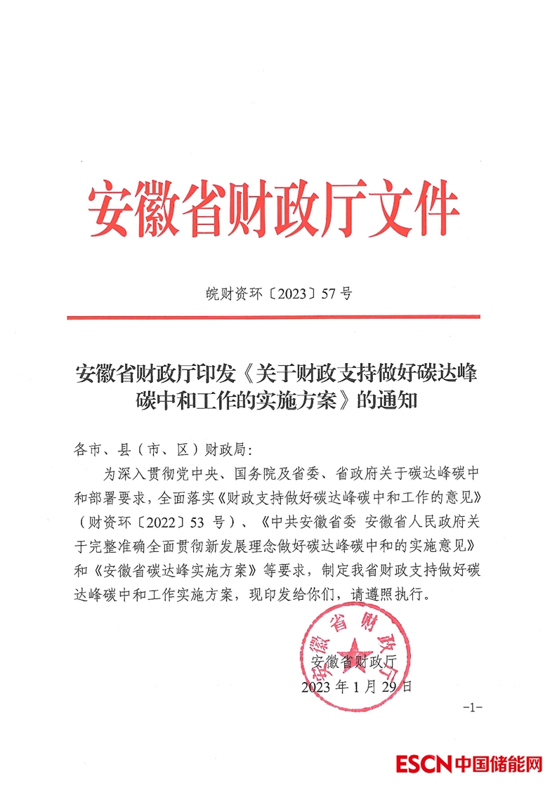 中國儲能網(wǎng)訊:近日,安徽省財(cái)政廳印發(fā)《關(guān)于財(cái)政支持碳達(dá)峰碳中和工作的實(shí)施方案》?!秾?shí)施方案》指出,在重點(diǎn)支持方向上,將聚焦能源清潔低碳高效利用、重點(diǎn)行業(yè)領(lǐng)域綠色低碳轉(zhuǎn)型、綠色低碳科技創(chuàng)新體系建設(shè)、綠色低碳生活和資源節(jié)約利用、碳匯能力鞏固提升、健全綠色低碳市場體系等六個方面。
