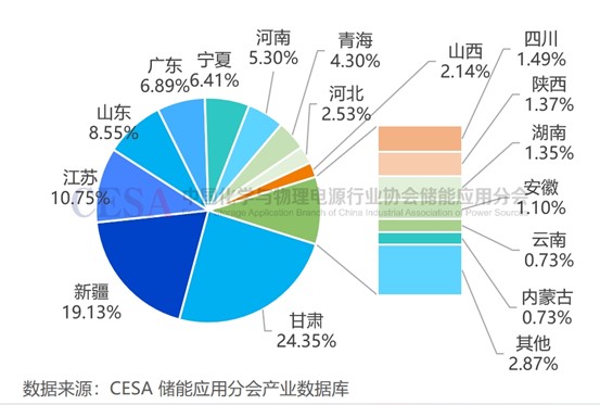 另一方面,甘肅省在儲能電站的建設(shè)上也取得了顯著的進展。據(jù)CESA儲能應(yīng)用分會產(chǎn)業(yè)數(shù)據(jù)庫不完全統(tǒng)計僅2024年1-12月甘肅省在建的新型儲能規(guī)模就高達3.16GW/13.3GWh,容量占比為24.35%,位居全國第一。