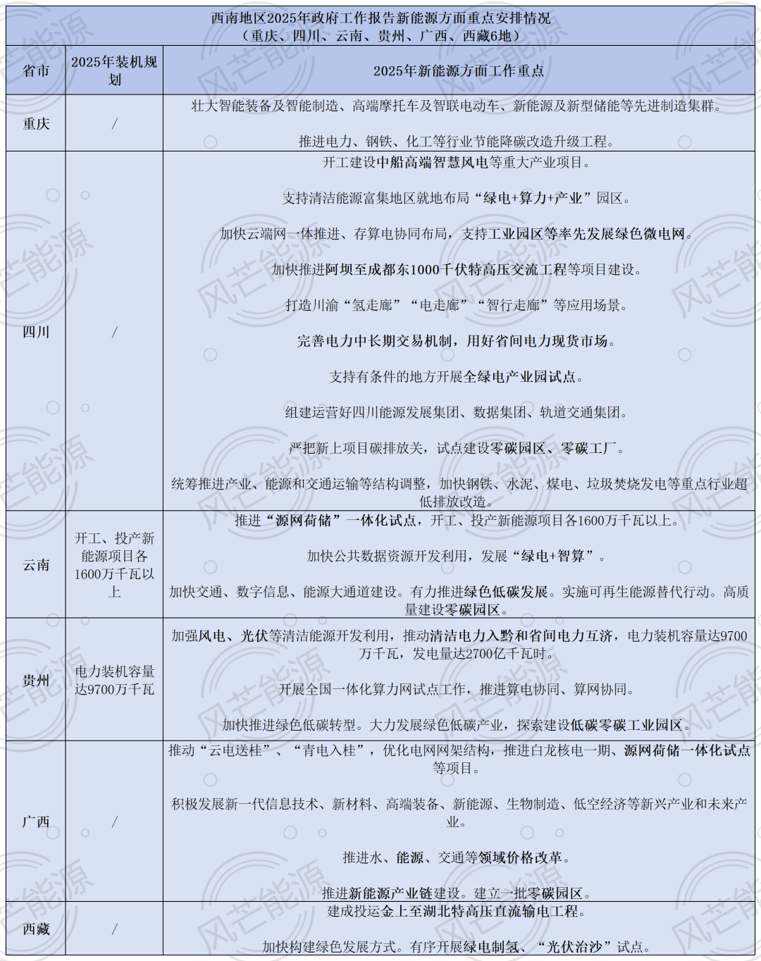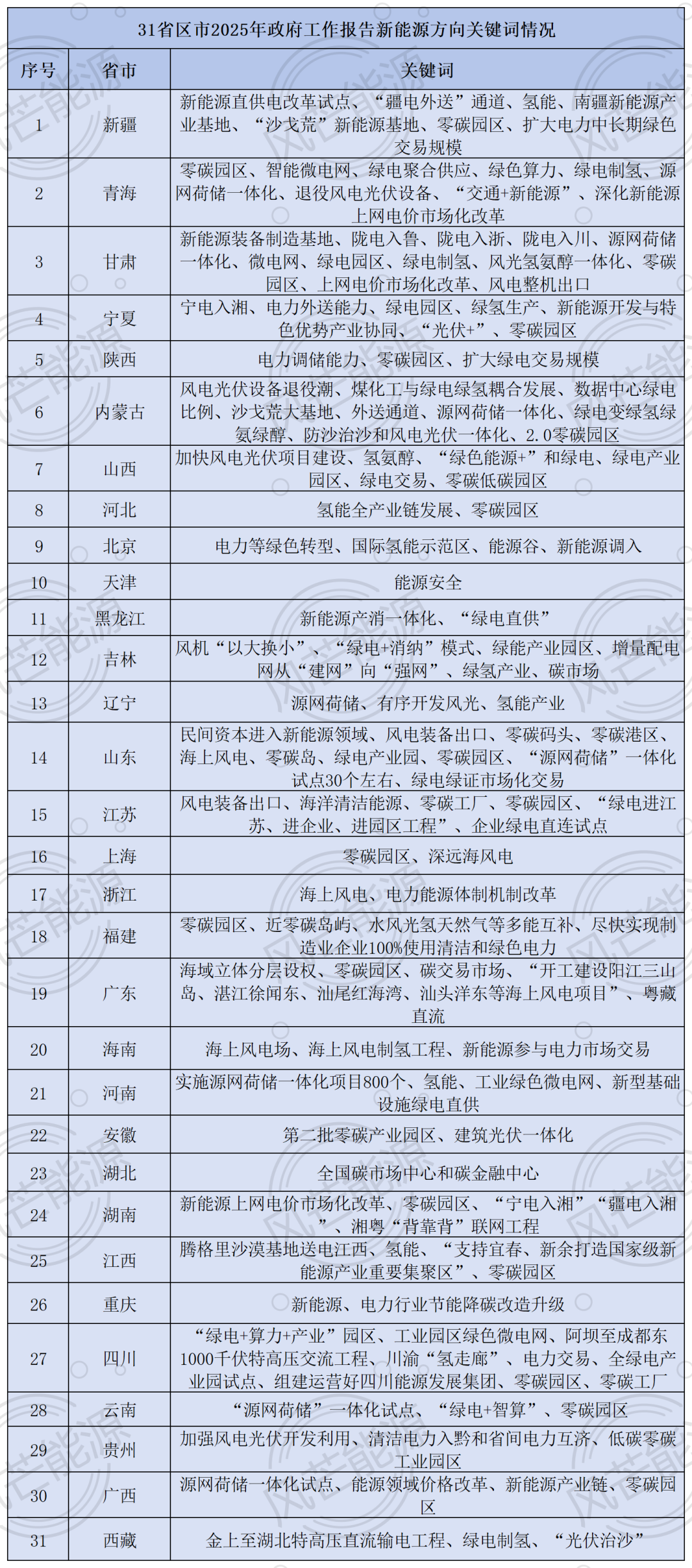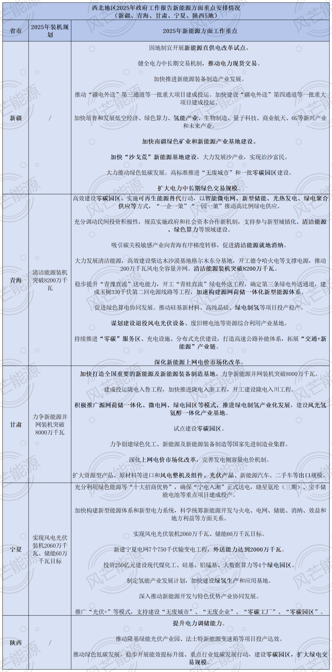 「風(fēng)芒能源」梳理2025年各省政府工作報(bào)告后發(fā)現(xiàn),站在“十四五”規(guī)劃收官與“十五五”規(guī)劃開局的關(guān)鍵節(jié)點(diǎn),針對新能源產(chǎn)業(yè),31省/市基于自身資源稟賦與產(chǎn)業(yè)優(yōu)勢,規(guī)劃路徑既循趨勢,又各有側(cè)重。