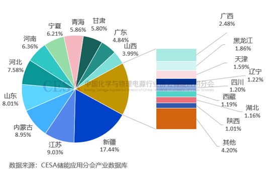 2024年,10個省市自治區(qū)定標(biāo)規(guī)模超過6GWh,新疆、江蘇、內(nèi)蒙古、山東、河北位居前五,中標(biāo)(候選人)公示規(guī)模均超10GWh,前五總落地規(guī)模約占全國的一半。