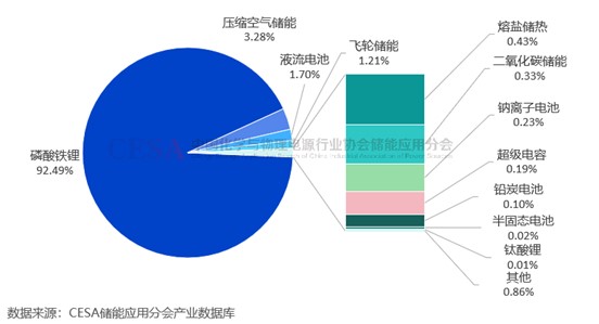 圖 2024年各技術(shù)路線儲能項(xiàng)目采招落地規(guī)模占比