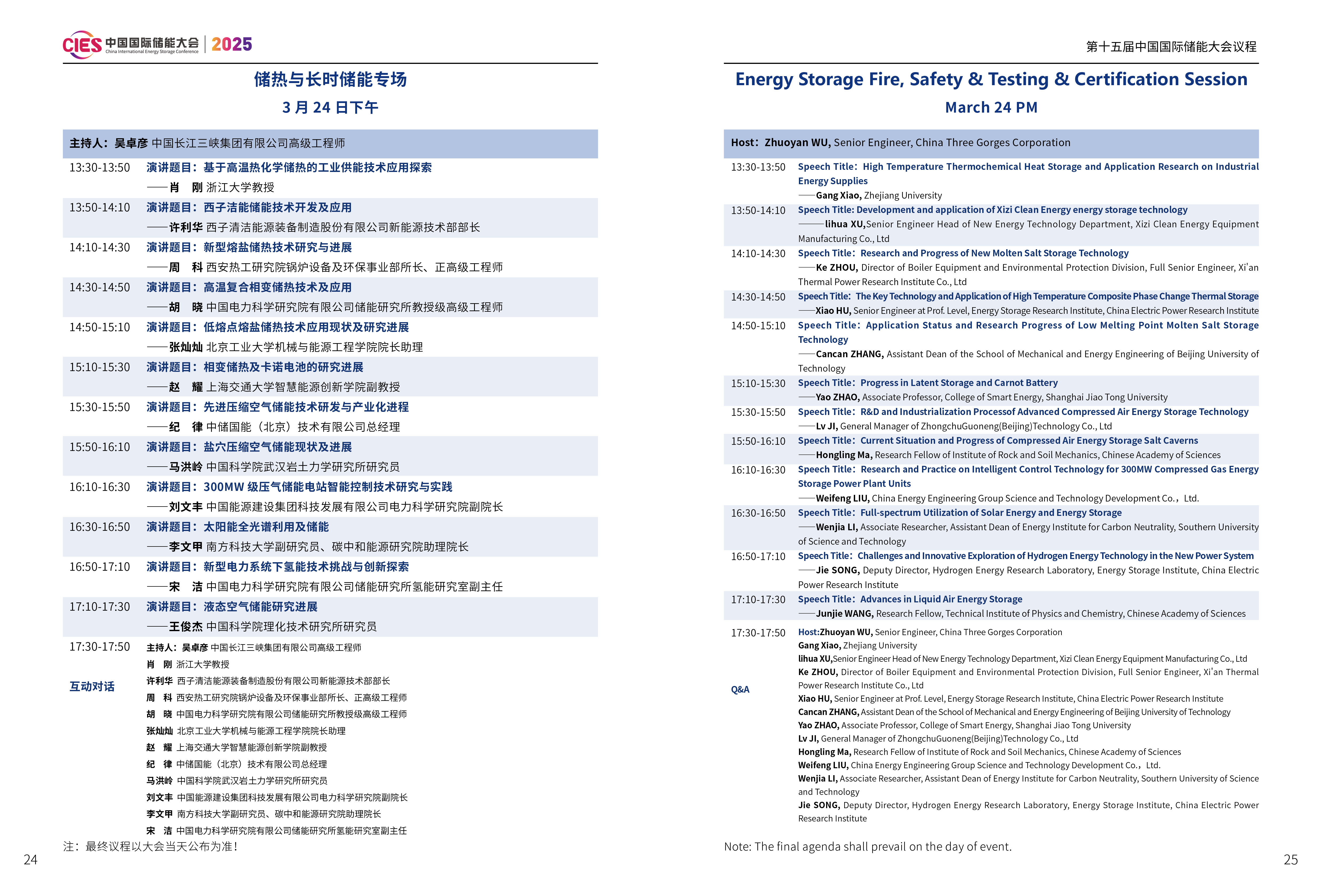 CIES2025儲能大會將設置:大會開幕式暨特邀院士專家報告、數(shù)智化配電網(wǎng)與新型儲能融合創(chuàng)新、新型電力系統(tǒng)與并網(wǎng)調(diào)度、新型儲能與新能源大基地協(xié)同發(fā)展、國際儲能、電力輔助服務、現(xiàn)貨交易及容量市場、工業(yè)綠色微電網(wǎng)、國家儲能標準宣貫、數(shù)智化新型儲能系統(tǒng)集成解決方案(上、下)、儲能消防、安全與檢測認證、新型儲能資本與投資、液流電池、儲熱與長時儲能、混合儲能、2025 新型儲能系列研究報告暨行業(yè)百強發(fā)布、全球化新型儲能供應鏈機遇與挑戰(zhàn)、數(shù)智化工商業(yè)儲能解決方案與商業(yè)案例、虛擬電廠與車網(wǎng)互動、海外儲能渠道開發(fā)與商業(yè)機遇、構(gòu)網(wǎng)型儲能系統(tǒng)及項目建設、儲能專用電池與ESG、新品發(fā)布會等23個專場,以下為儲熱與長時儲能專場議程(最終議程以大會當天發(fā)布為準)。