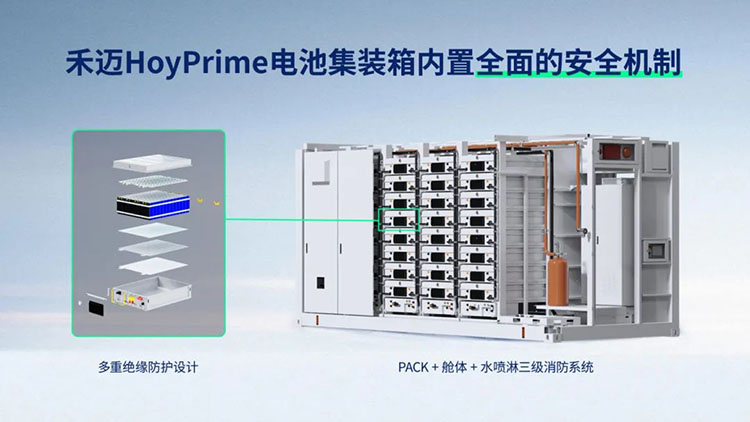 更重要的是,禾邁儲(chǔ)能系統(tǒng)采用主動(dòng)安全技術(shù),為儲(chǔ)能電站安全運(yùn)行筑起堅(jiān)實(shí)堡壘。其中,HoyPrime電池集裝箱采用多重絕緣防護(hù)措施,確保電池系統(tǒng)的絕緣安全性;設(shè)置電芯+PACK+電池簇+匯流柜四級(jí)短路保護(hù),減少電芯短路風(fēng)險(xiǎn);配備PACK+艙體+水噴淋三級(jí)消防系統(tǒng),可在熱失控發(fā)生時(shí)迅速抑制火勢蔓延。