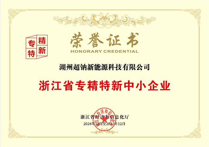 中國儲能網(wǎng)訊:近期,超鈉新能源榮獲“浙江省專精特新中小企業(yè)”認定。