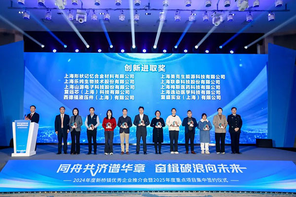 中國儲能網(wǎng)訊:2月26日,上海市松江區(qū)新橋鎮(zhèn)舉行2024年度優(yōu)秀企業(yè)推介會暨2025年度重點項目集中簽約儀式,對鎮(zhèn)域內(nèi)在科技創(chuàng)新、產(chǎn)業(yè)升級、黨建引領等方面表現(xiàn)突出的企業(yè)進行表彰。松江區(qū)副區(qū)長陳容,新橋鎮(zhèn)黨委書記黎軼,黨委副書記、鎮(zhèn)長吳超峰,副鎮(zhèn)長沈耀庭等領導出席會議。美克生能源作為新橋鎮(zhèn)優(yōu)秀企業(yè)代表參與活動,連獲“創(chuàng)新進取獎”和“傳播新橋獎”兩項表彰。