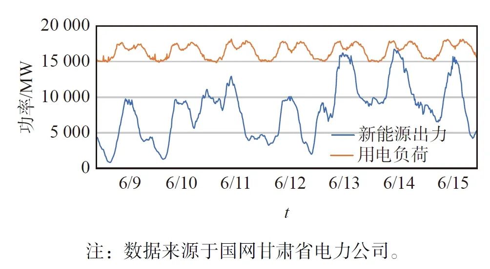 ↑ 甘肅省夏季一段時間新能源出力與用電負荷的關(guān)系